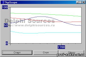 TkpScope (Delphi) - исходник программы, показывающей пример создания компонента предназначенного для моделирования экрана осциллографа в окне программы, т.е. для быстрого отображения меняющихся во времени сигналов. На экран можно одновременно выводить до 10 сигналов - Автор Поляков Константин.